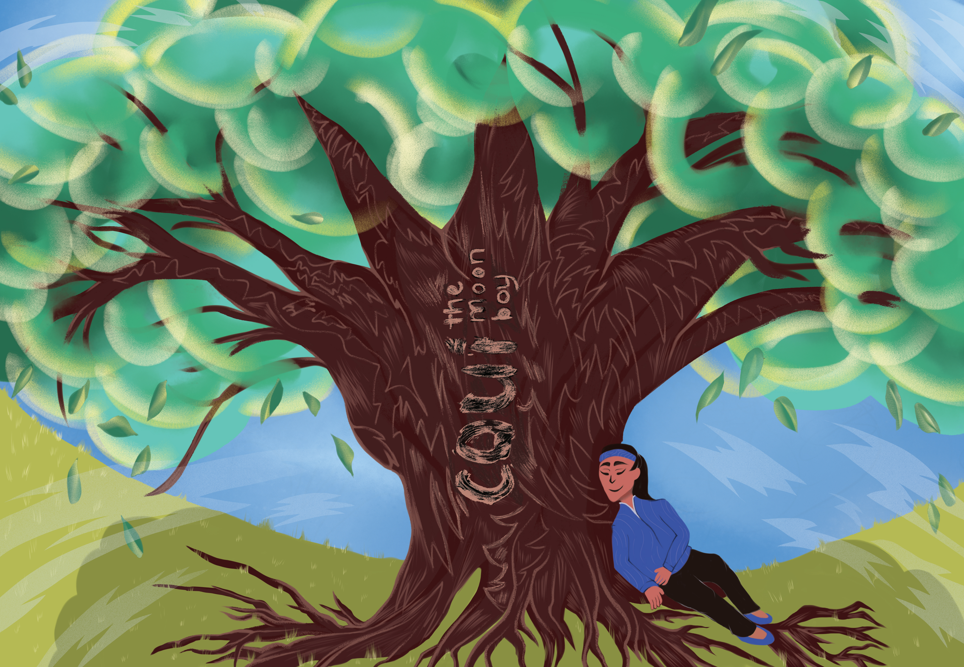 This was a Vietnamese conceptual interior book cover illustration about scene in the folklore that tells a boy name Coui discovering the magical tree. 2022. Adobe Photoshop.