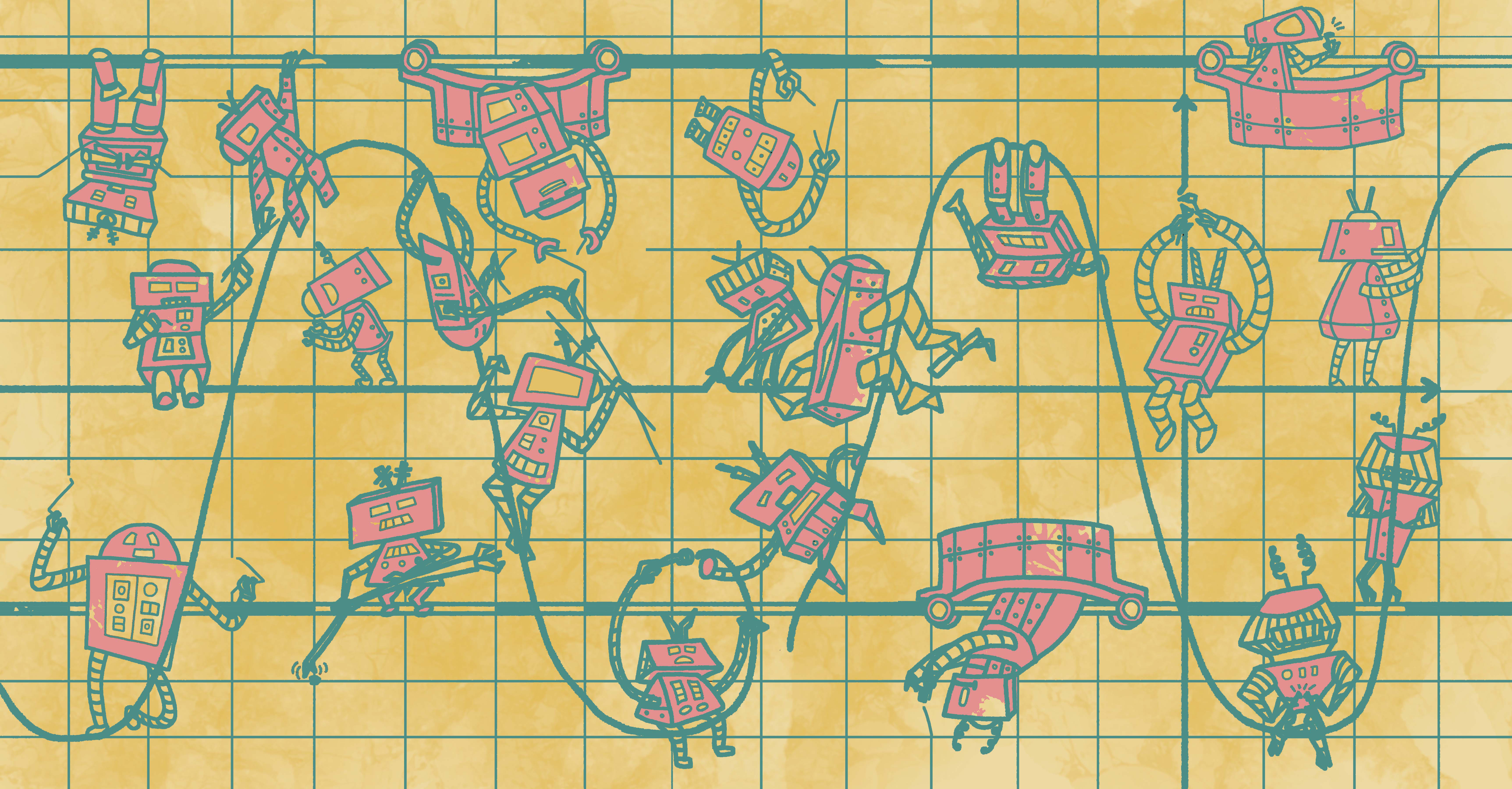 This sample was a surface design pattern illustration surrounding the concept of math, “Robots in Stem” 2019. Adobe Photoshop.